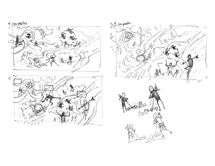 I took the composite sketch I liked best and refined it with input from my critique partners.